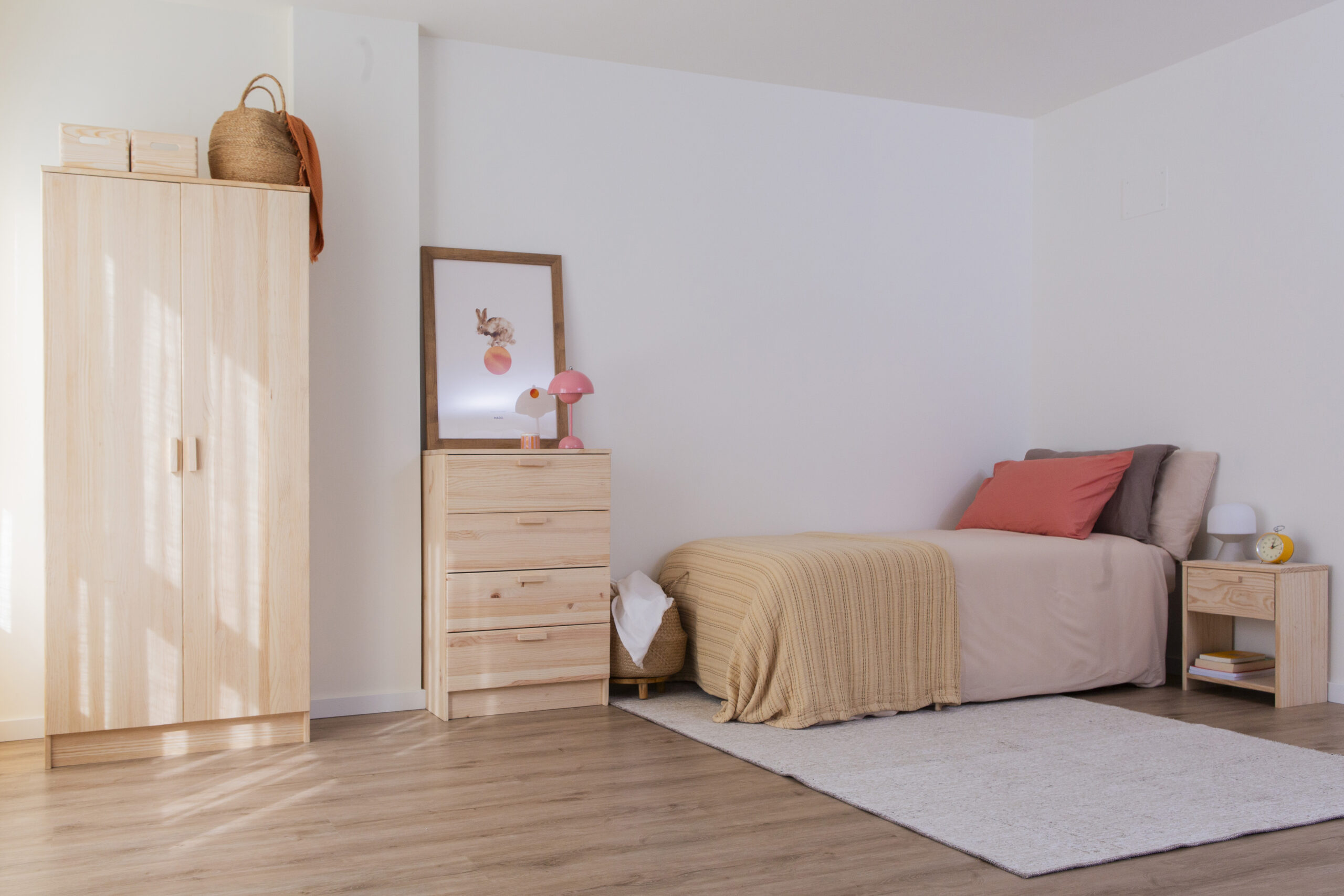 Más allá de su funcionalidad, VITA aporta calidez y hace que el dormitorio se sienta más acogedor. Rodear un dormitorio de madera natural genera sensación de confort y serenidad, creando espacios donde vivir el día a día con calma y atención.