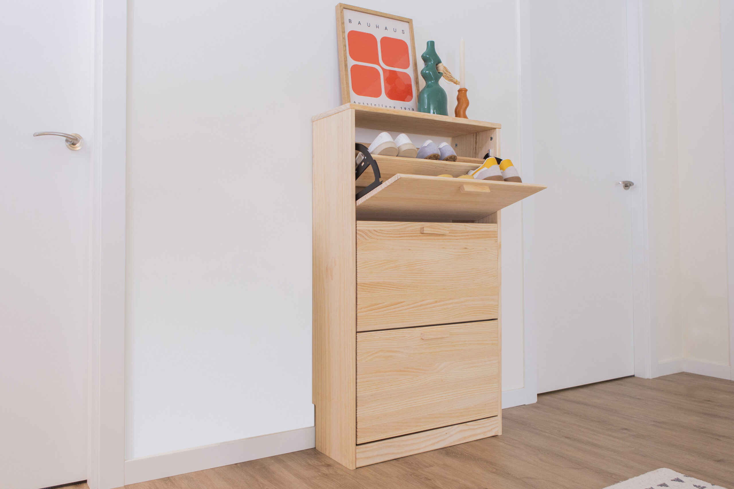 Todas las piezas de VITA están hechas con madera 100% maciza de pino con certificado PEFC. Cada detalle busca sostenibilidad y durabilidad, sin renunciar a la estética ni a la funcionalidad.
