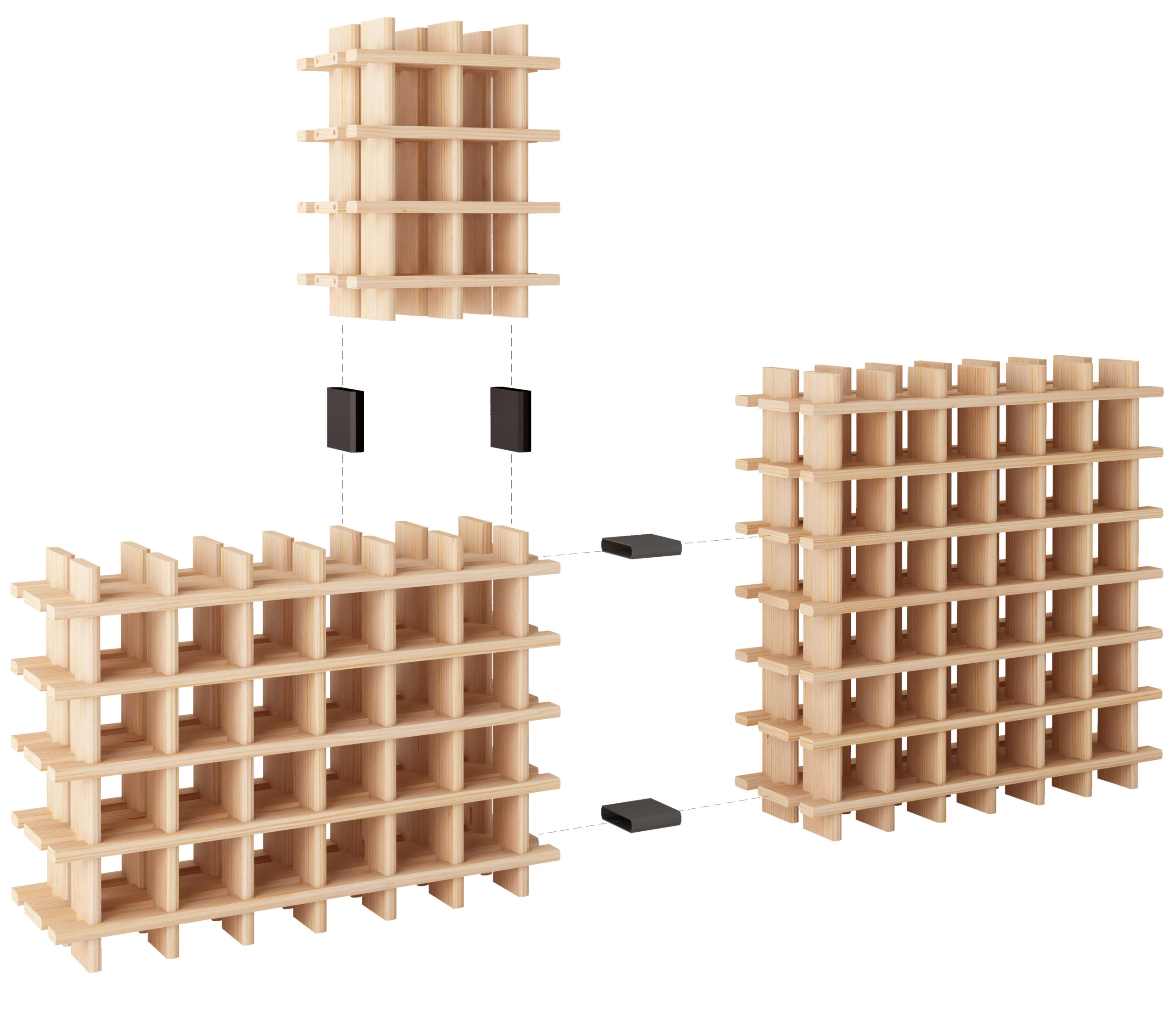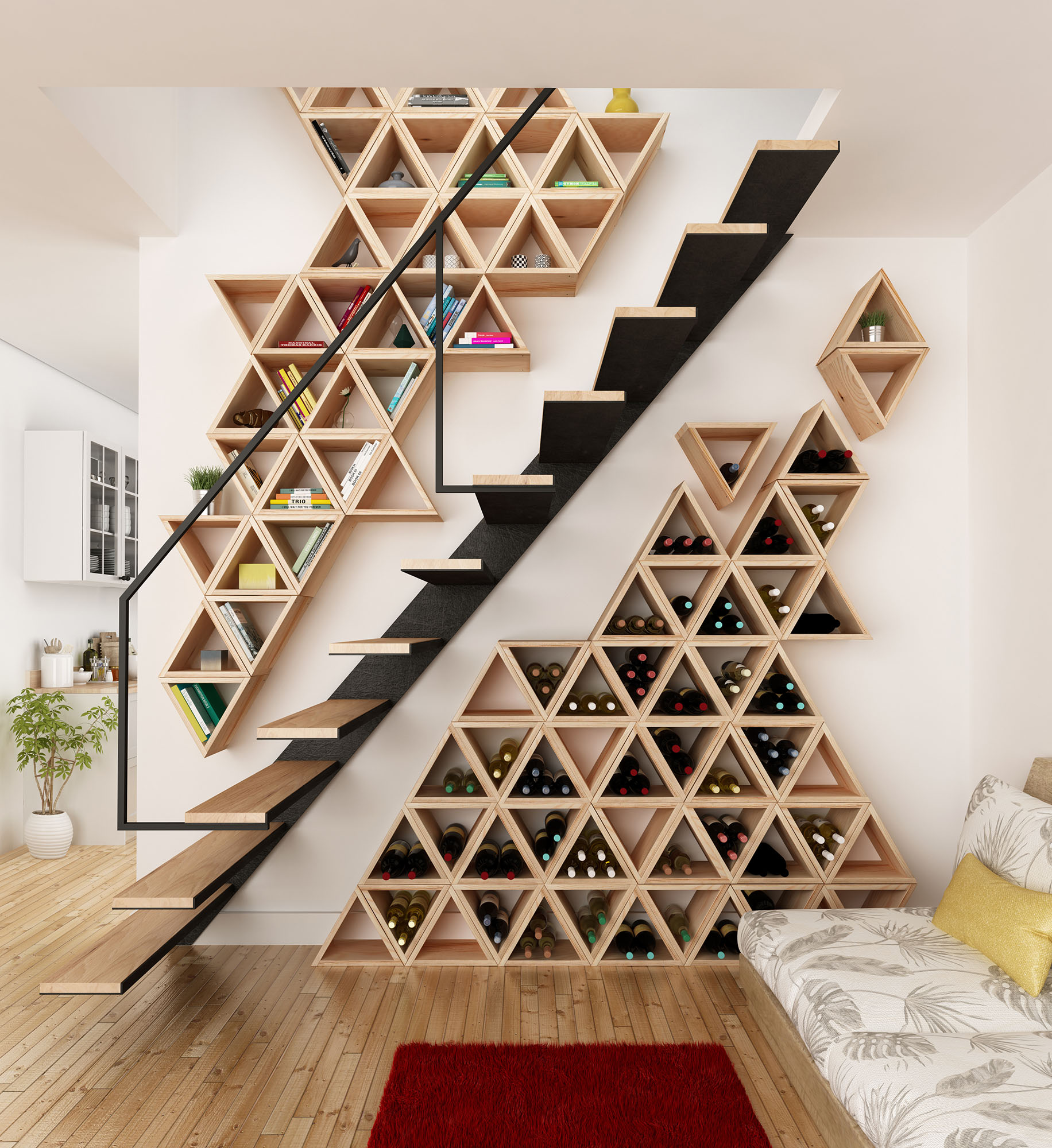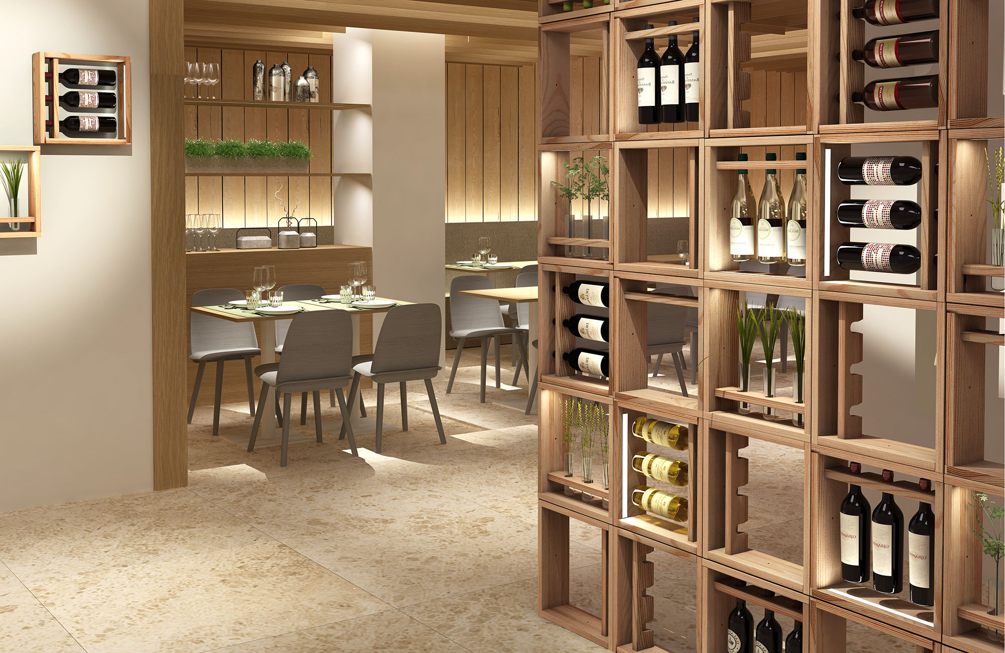 Prisma botilategi bakoitzak, ordea, 6 botila har ditzake. Egurrezko botilategi honi esker, diseinuzko horma bat lor daiteke, non ardorik hoberenak erakuts daitezkeen. Zenbat eta pieza gehiago, orduan eta botilategi handiago.