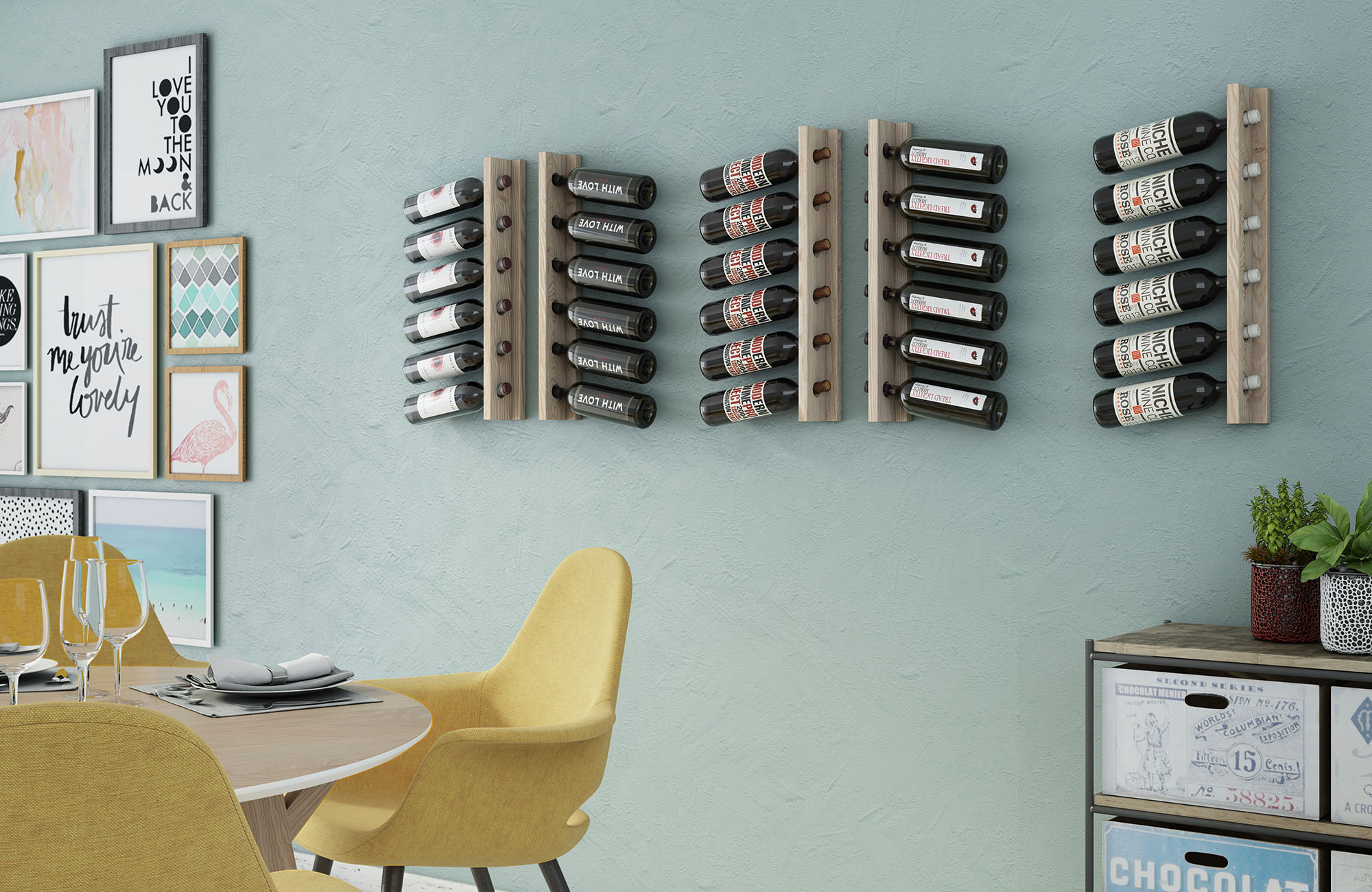 Egurrezko botilategirik bakunena da agian. Modelo honetan horman jartzen den lerro bertikal bat daukagu, sei botila hartzen dituena. Biltegiratze gehiago behar izanez gero, hainbat modulu jar daitezke. Estilo naturala duen osagarri iraunkorra, ardo-botilak antolatuta edukitzen laguntzen duena eta edozein hormari ukitu apaingarria emango diona.
