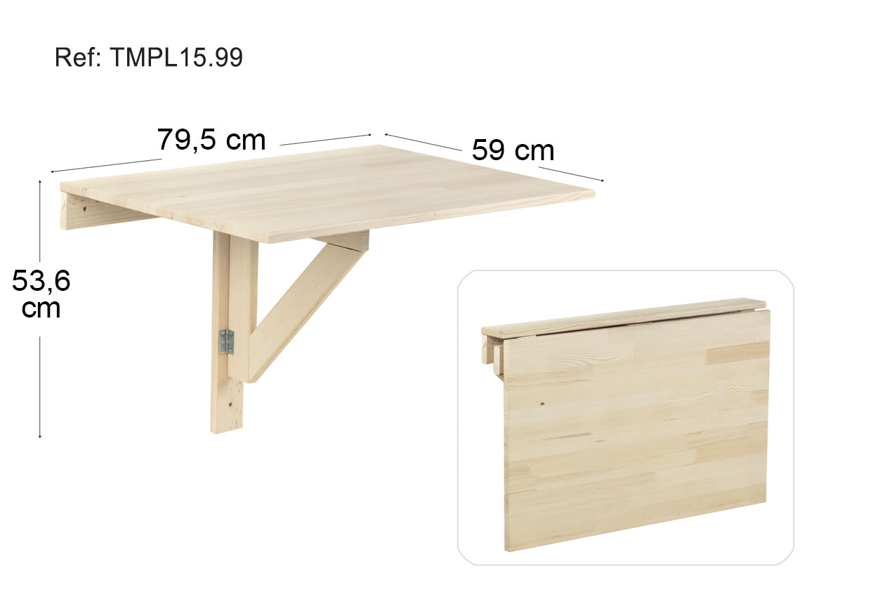 79, 5 cm! Ez duzu hormaren metro bat ere behar zurezko mahai hau jartzeko. Gainera, tolesgarria denez, erabiltzen ez denean ez du lekurik betetzen. Irtenbide erraza da leku txikietan telelanerako edo bazkaltzeko lekua behar denean, edo balkoi txiki batean kanpoan gozatzeko.