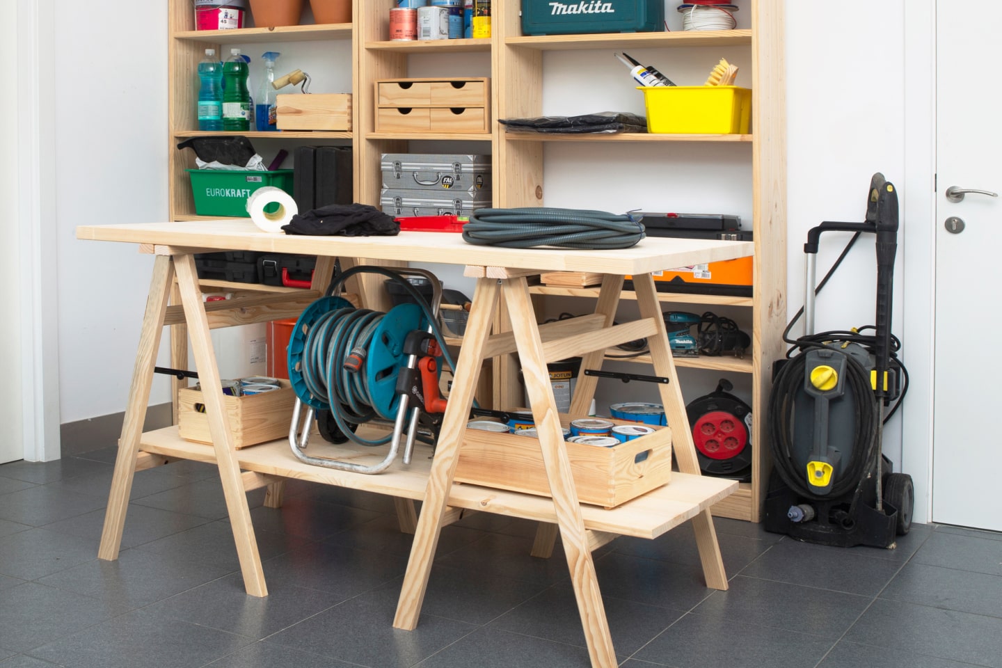 Produciamo una vasta gamma di cavalletti e pannelli per qualsiasi esigenza. Con solo un cavalletto e un pannello, gli utenti possono creare il tavolo in legno massiccio ideale per qualsiasi uso e spazio.